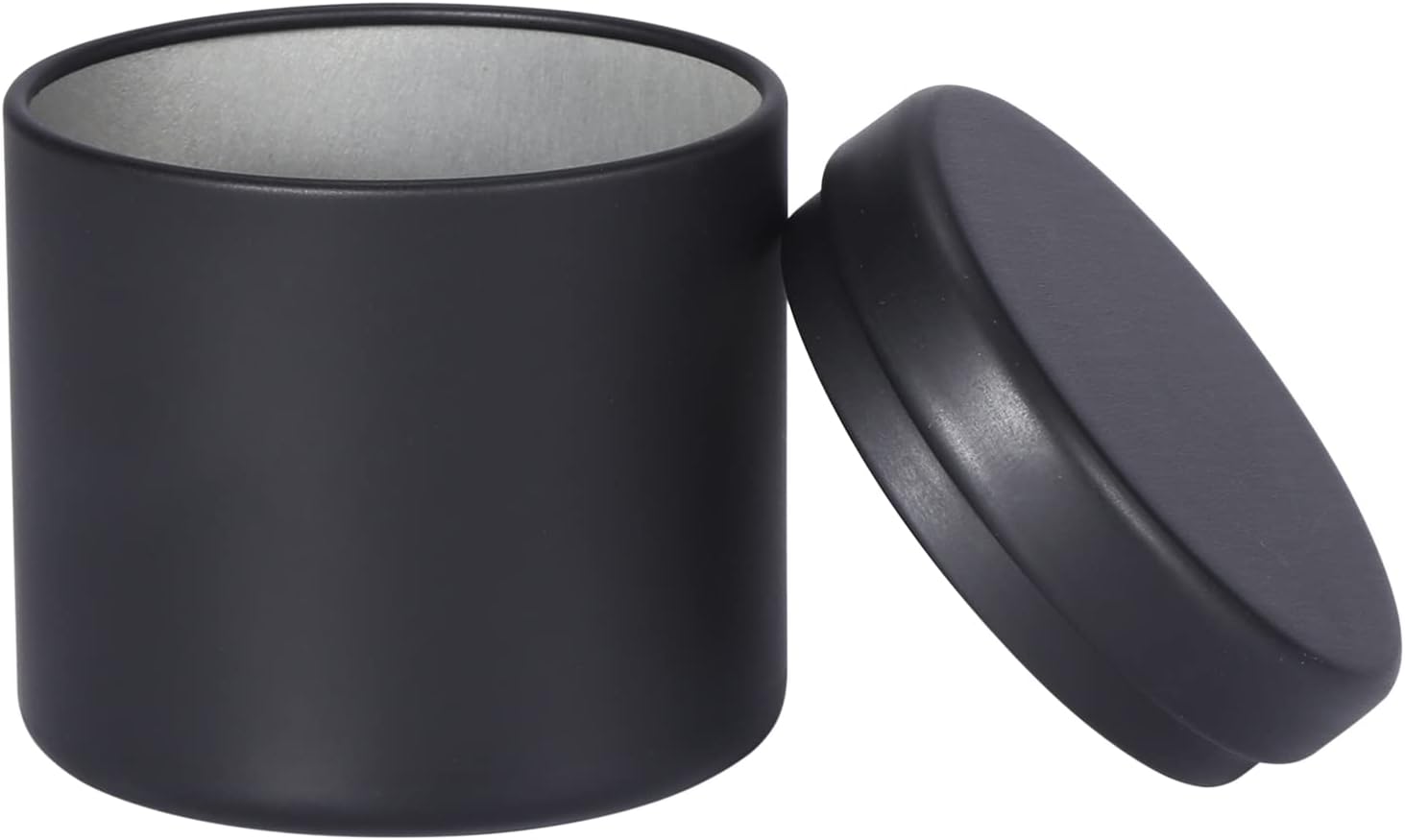 Matte black aluminum tin with lid.